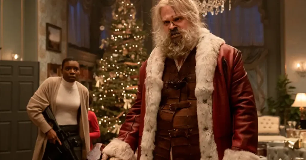 No filme, David Harbour, conhecido pelo público como o xerife Hopper de Stranger Things, assume o papel do Bom Velhinho. Mas aqui, o tradicional Noel ganha uma faceta cheia de sarcasmo, força bruta e um senso de justiça implacável. A trama começa quando uma família rica é feita refém em sua mansão durante a véspera de Natal por um grupo de mercenários. O que eles não esperavam? Que Papai Noel entraria na briga para garantir que a noite seja realmente “feliz” — pelo menos para os inocentes.